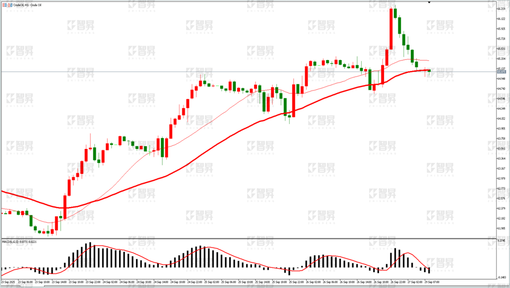 技术面:日线上,上一个交易日行情冲高回落且收长上影线K线,短期警惕油价下行风险。日内关注上方65.37美元一线压力,下方关注63美元一线支撑。
