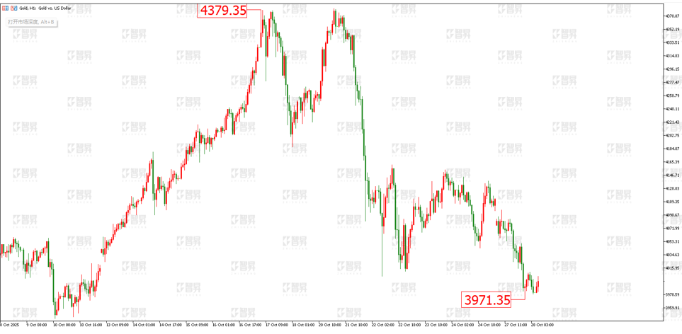 技术面:黄金昨日(10月27日)延续下跌,4000美元关口跌破,走势偏弱。日内上方关注4030美元的阻力,下方若跌破3970美元则可以看向3930美元一线。