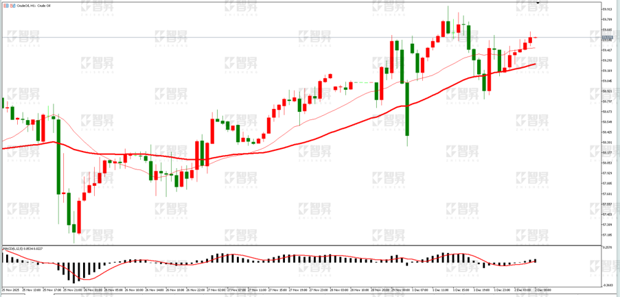 技术面:近期行情震荡上行表现较为坚挺。指标上看,隔夜行情上行且站上20日均线短期存在进一步走高的机会。日内关注下方59美元一线支撑情况。